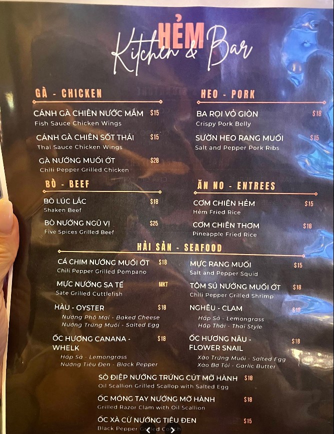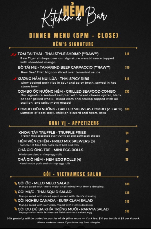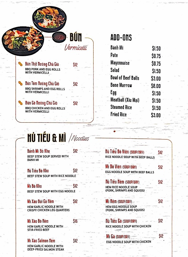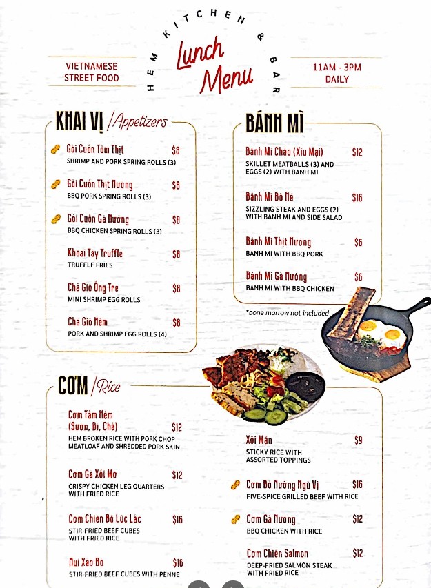 At Hèm Kitchen & Bar, we bring the vibrant flavors of Vietnamese street food to Houston, TX. Our restaurant menu features a variety of dishes, including pho, banh mi, spring rolls, and much more, all made with fresh ingredients. Whether you're looking for a quick bite or a relaxed meal, Hèm Kitchen & Bar offers an inviting atmosphere for both dine-in and takeout. Experience the authentic taste of Vietnamese cuisine with every bite at Hèm. Join us today for an unforgettable culinary experience!