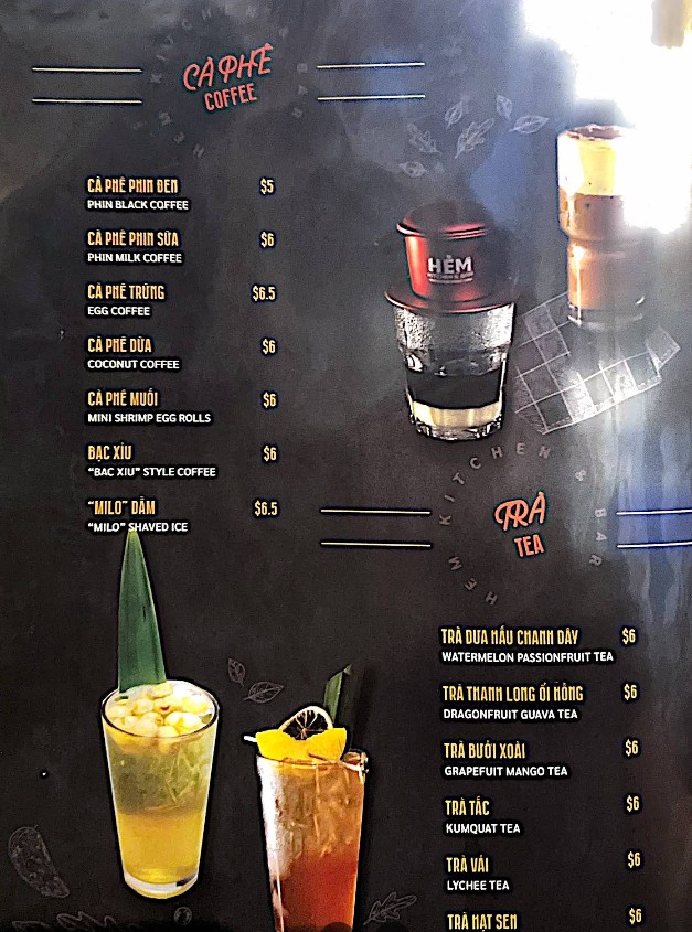 Hẻm is open on Monday, Tuesday, Wednesday, Thursday and Sunday from 11:00 AM - 10:00 PM; Friday and Saturday from 11:00 AM - 12:00 AM.